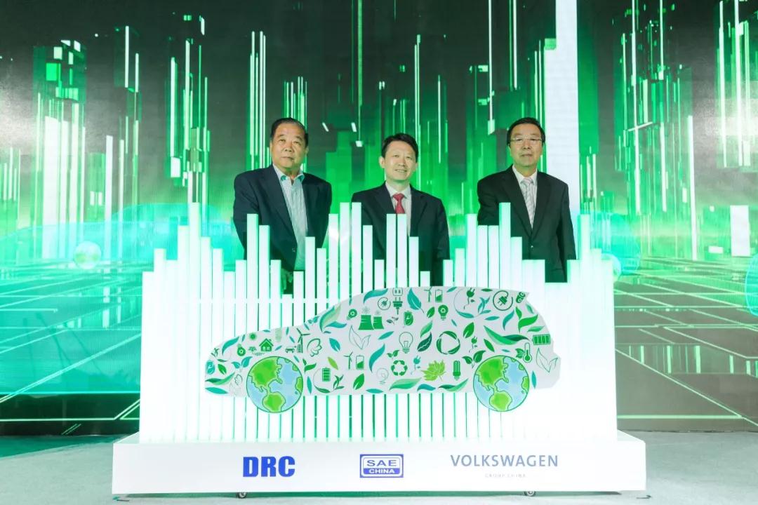 付于武、隆國強(qiáng)、張綏新(從左至右)為2018中國汽車產(chǎn)業(yè)藍(lán)皮書發(fā)布揭幕