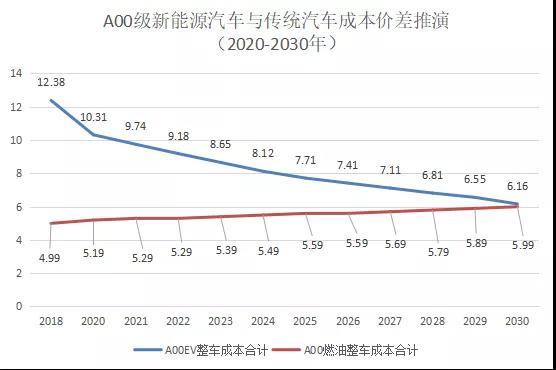 電動車購買價才能追平燃油車。但由于使用成本低,2025-2027年消費者購買A00