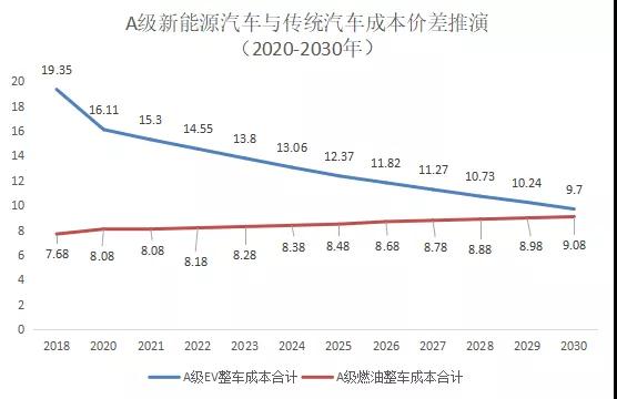 2030年A級以下電動車購車價追平燃油車