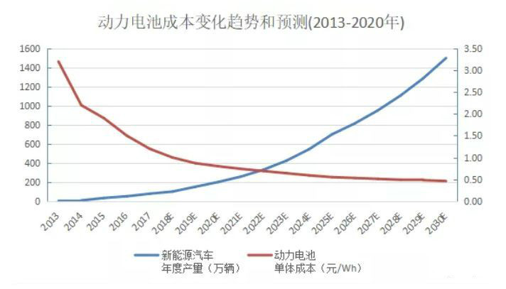 在國務院發展研究中心產業經濟研究部、中國汽車工程學會和大眾汽車集團(中國)聯合編著的《2018年中國汽車產業發展報告》中,對動力電池成本的預計是到2018年底,電池成本為1元/Wh,到2025年,電池成本為0.55元/Wh。這與當前的電池成本相比,幾乎是降低了三分之二,電動汽車的終端售價也會相應降低。