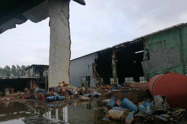 近日,記者來到江蘇省淮安市淮陰區袁集鄉一個被查處的非法鉛冶煉點,破舊的工廠緊鄰淮安境內重要河流鹽河。雖然停工已一年,但廠區空氣中的味道依然刺鼻。在一堆黑色化學物質旁邊,樹木枯槁死亡。