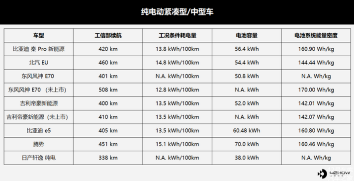 為此,我們整理了國內(nèi)主流純電動車型工信部續(xù)航、電耗、電池容量及電池系統(tǒng)能量密度數(shù)據(jù)。