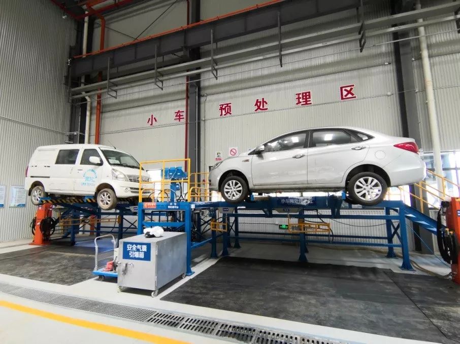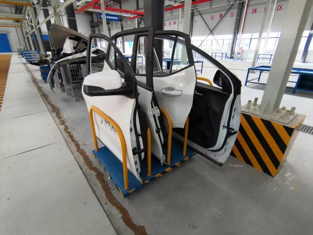 乾泰的車輛拆解工廠,看不到那些超大的拆車鉗和液壓剪,而是像一個逆向的汽車總裝線。