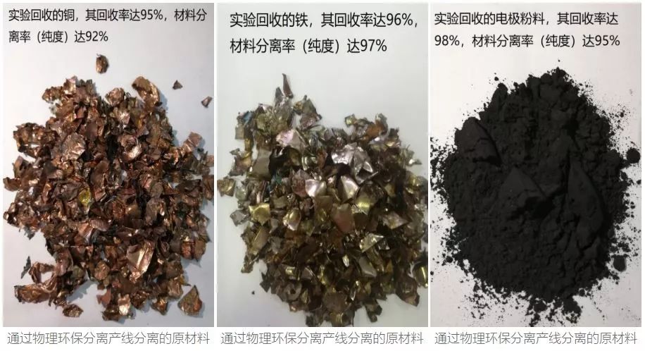 乾泰的物理環保分離有多個工序。第一步的產物是鋼殼,在第一次破碎時,通過磁選和電池其他材料分離。