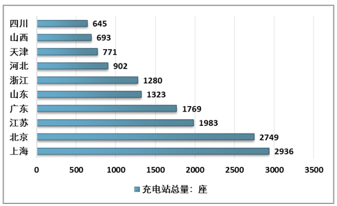 2018年全國充電站總量2.06萬座,其中全國前十省份達到15051座,占全國充電站總量比例的73%左右。