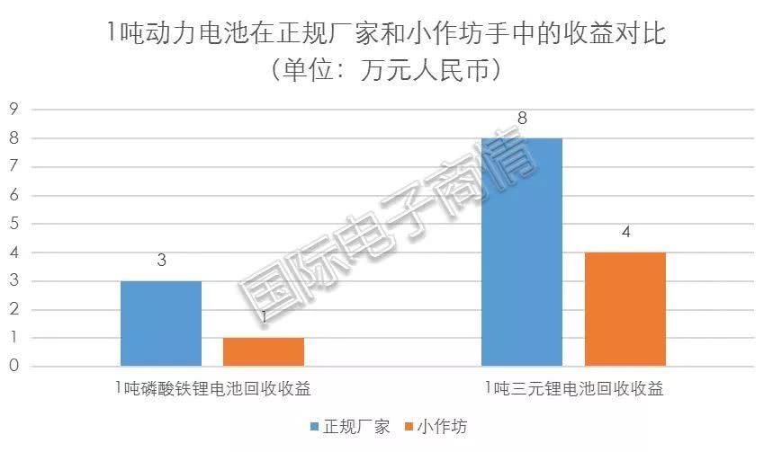 圖4 1噸動力電池在正規廠家和小作坊手中的收益對比 制圖:國際電子商情