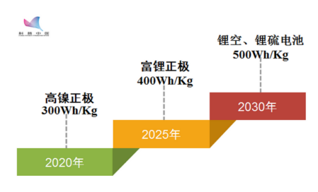 國務院頒發的《中國制造2025》提出2020年動力電池能量密度要達到300Wh/Kg,2025年達到400Wh/Kg,2030年能量密度達到500Wh/kg。目前量產動力電池單體能量密度在230±20Wh/Kg,根據《中國制造2025》的要求,結合現在的技術路線,我國的科技工作者提出了使用高鎳正極+準固態電解質+硅碳負極實現300Wh/Kg的目標;2025年使用富鋰正極+全固態電解質+硅碳/鋰金屬負極電池實現 400Wh/Kg的目標,2030年使用鋰空氣電池、鋰硫電池達到500Wh/Kg的目標。