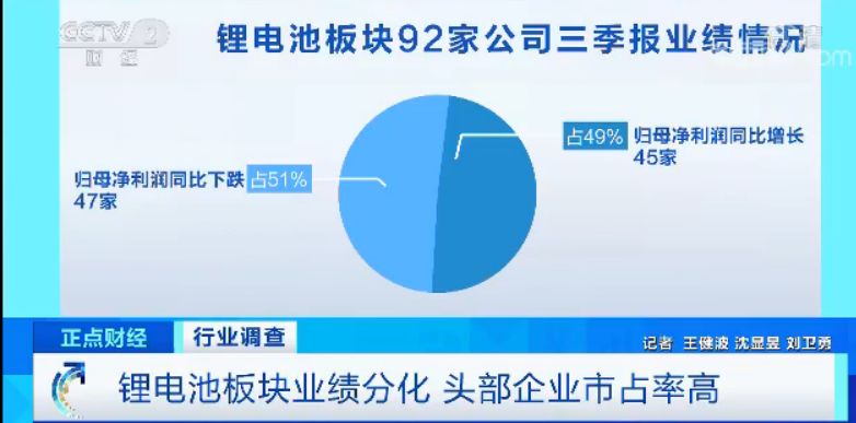 鋰電池板塊業績分化,已經公布的三季報顯示,前三季度板塊內92家公司中,有45家公司歸母凈利潤實現同比增長,47家同比下跌,其中堅瑞沃能歸母凈利潤-26.07億元,虧損最為嚴重。