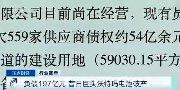 公告顯示,沃特瑪目前對外負債約197億元,拖欠559家供應商債權約54億余元。公司現有資產只剩一部分建設用地、對外股權投資、車輛、存貨、機器設備、應收賬款等。