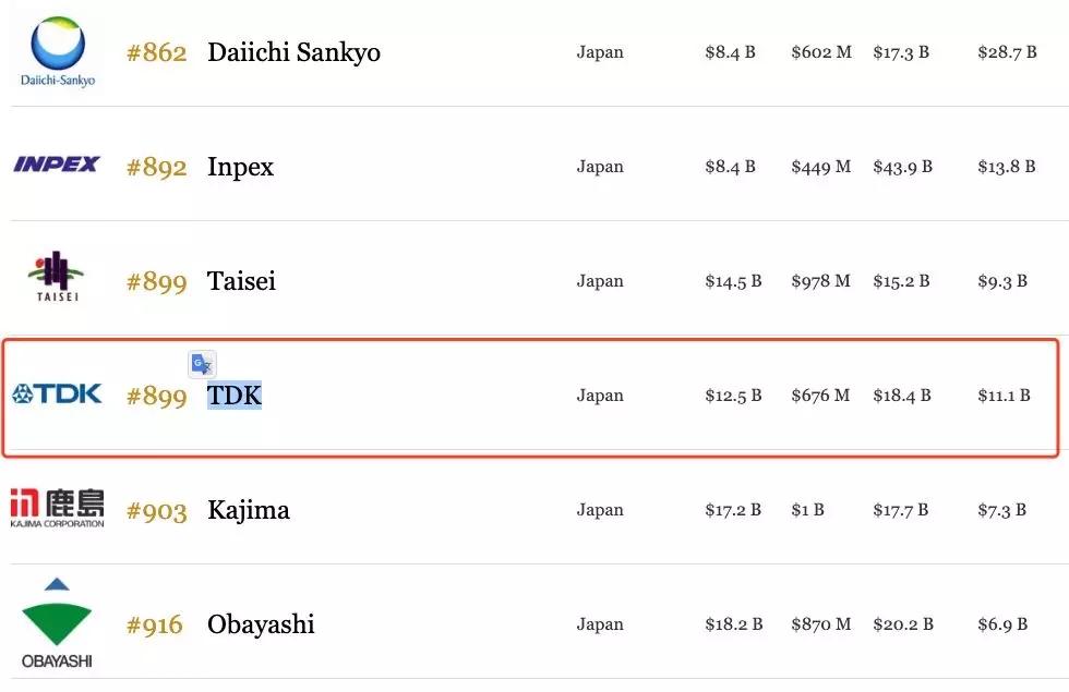 TDK株式會社是一家日本上市公司,目前在福布斯全球最大的上市企業目錄中排名899位,是全球知名的電子工業品牌。