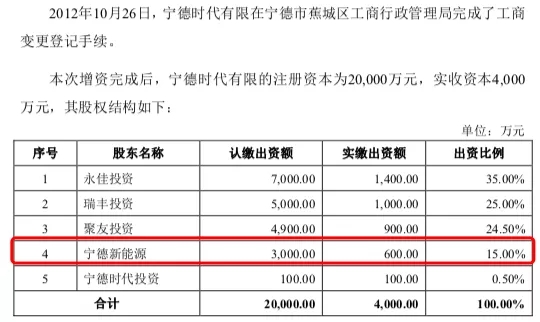 根據寧德時代上市前的披露,2015年12月,CATL從「寧德時代新能源科技有限公司」整體變更為「寧德時代新能源科技股份有限公司」,并在隨后一年內引入了大量中國資本。