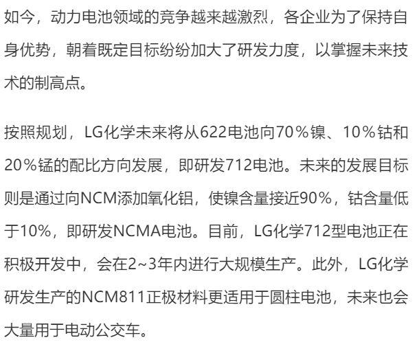 總體來看,各家企業在提高能量密度的路上,不約而同地把目光瞄向了三元體系,高鎳化成為共識。在這一過程中,鎳鈷錳(NCM)或者NCA成為提升能量密度的法寶,電池類型也從NCM523發展到NCM622,如今NCM811電池也已實現量產。不過,盡管各大企業對高比能量的發展路線有了一致認識,但在這一競賽中暫時也分出了高低。目前,松下憑借21700電池的高能量密度領先于其他企業,三星SDI落后于其他對手,處于墊底位置。