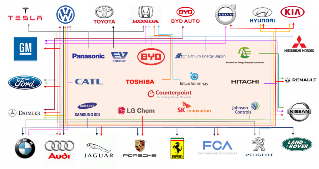 寧德時代此前是全球最大的電池廠商,但若不計中國市場,其全球市占僅有0.3%。相較之下,不計中國和特斯拉,三家韓國電池企業的全球市占高達70.1%,大眾、通用、寶馬、戴姆勒、雷諾及韓國車企現代起亞,都是他們的大客戶。