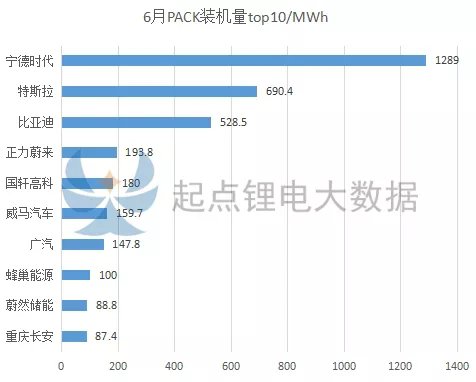 據(jù)起點(diǎn)鋰電大數(shù)據(jù)統(tǒng)計(jì),6月實(shí)現(xiàn)配套裝機(jī)的PACK企業(yè)共有87家,其中排名前10的企業(yè)分別是寧德時(shí)代、特斯拉、比亞迪、正力蔚來(lái)、國(guó)軒高科、威馬汽車(chē)、廣汽、蜂巢能源、蔚然儲(chǔ)能和重慶長(zhǎng)安,10家企業(yè)合計(jì)市場(chǎng)份額達(dá)到74%。