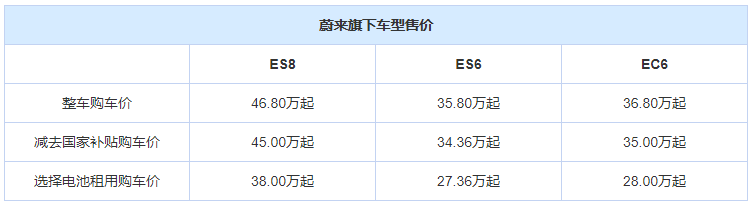 從上表可以看出,選擇電池租用方式購車后,蔚來旗下車型的售價有了大幅降低,其中ES6與EC6的起售價不到30萬,價格整整降了一個級別。而消費者還可以針對該價格繼續靈活使用不同銀行的金融服務,從而減小購車負擔。但與購買含電池整車不同的是,消費者還需要承擔每個月最低980元的花銷,且只要在用電池,那么這筆費用就會永遠存在。