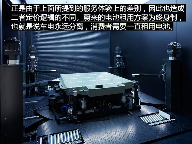 蔚來的車電分離服務是基于自家的換電體系而提供,汽車和電池可以實現物理上的分離。這也就意味著如果消費者長時間不需要用車,那么是有可能完全不用電池,而將電池歸還,避免繳納車輛閑置期間產生的租賃費用。此外,用戶還可以升級電池包以獲得更先進的電池技術。