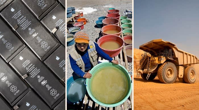 使用石墨的鋰離子電池;智利的鋰生產;剛果民主共和國銅鈷礦上的一輛卡車