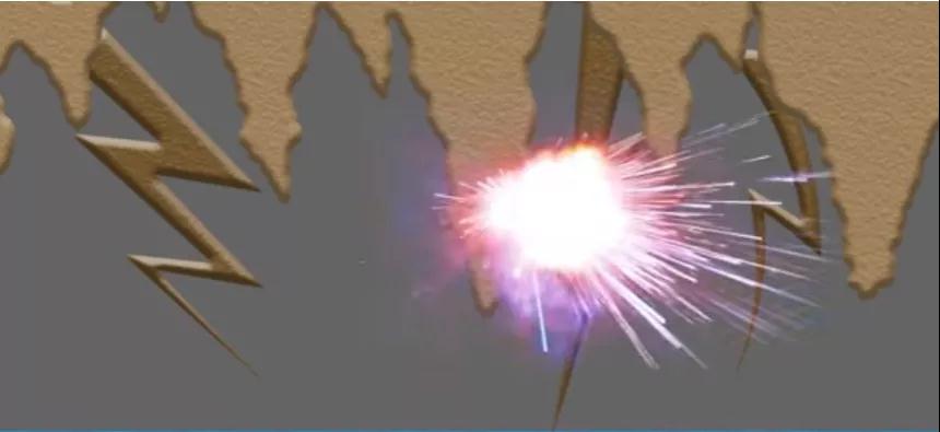 枝晶產生穿透隔膜產生為短路進而爆出火花的示意圖