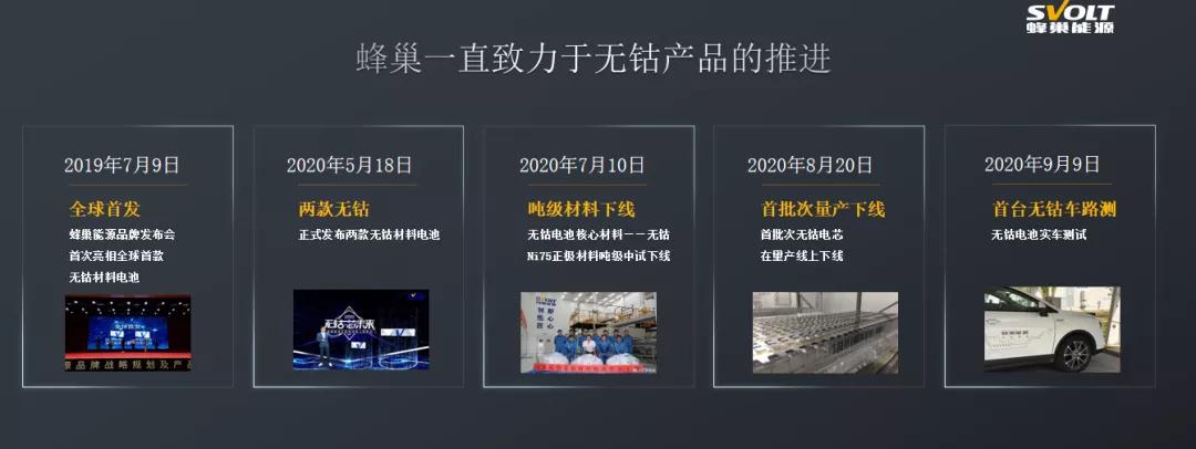 目前,蜂巢能源的無鈷電池已經裝車測試。很快無鈷電池就將搭載到量產電動汽車上。高比能動力電池,終于實現了無鈷化。