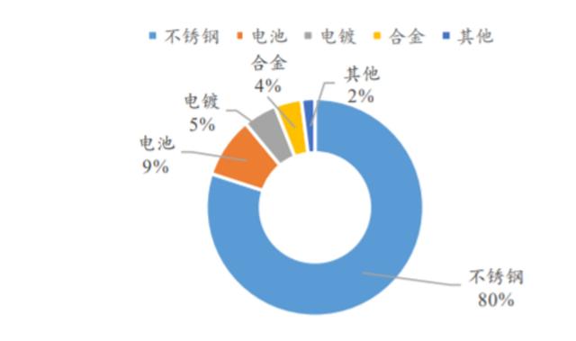在近代工業中,鎳主要用來生產不銹鋼,在 2019 年原生鎳消費結構中,80%鎳用于不銹鋼;而電池、電鍍和合金分別占比 9%、5%、4%,未來不銹鋼將會保持 3-5%穩定增長,由于近年來新能源汽車行業的興起將拉動電池對鎳的需求。UBS曾在報告中寫到當新能源汽車市場占比達6%時,鎳的需求達16.7萬噸;當新能源汽車市場占有率達10%,鎳的需求達40萬噸,可能將導致全球優質鎳供應緊張。