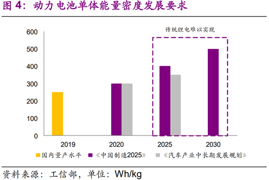 國內為例,目前我國動力電池已由磷酸鐵鋰轉向高鎳三元,但供應商推測,未來五年依靠現有三元體系,動力鋰電池單體能量密度難以實現高于350Wh/kg的目標,即無法達到國家要求。