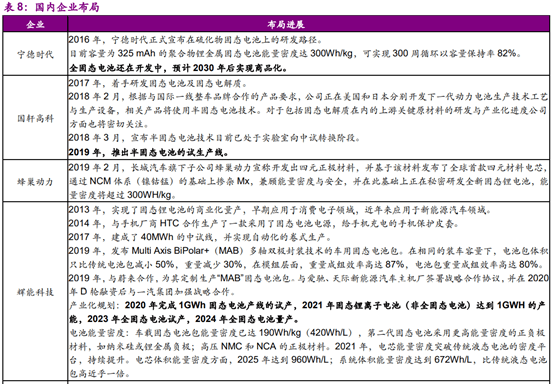 中國方面,部分企業已進入固態鋰離子電池(半固態電池)中試階段,2025年前或可實現量產,如寧德時代、輝能科技等。