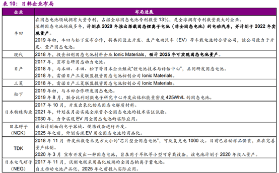 電動車量產。目前全球范圍內,日本企業的固態電池技術較為領先,許多日韓企業選擇抱團研發。