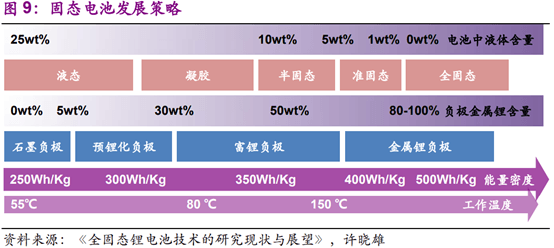 多數機構預期,按照目前發展情況,2025年固態電池將實現商業化量產。從演進角度,固態電池技術發展預計采用逐步顛覆策略,液態電解質含量逐步下降,全固態電池是最終形態。