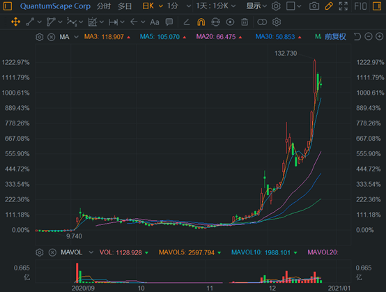 三、鋰電顛覆者?固態電池企業Quantum Scape一月暴漲10倍