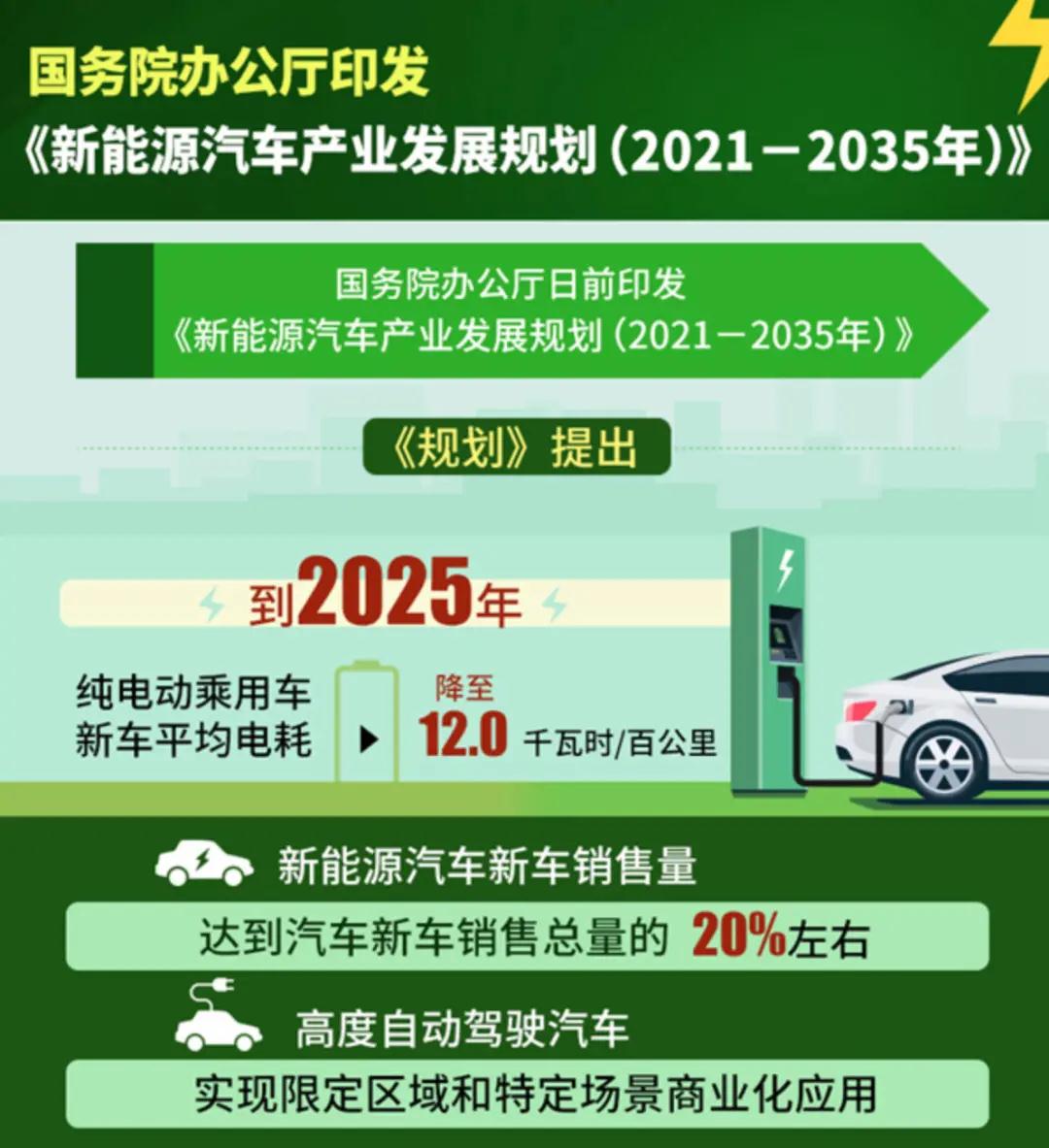 根據國務院辦公廳在2020年11月發布的《新能源汽車產業發展規劃(2021-2035)》,中國的新能源汽車的市場將會繼續擴大。發展到2025年,中國新能源汽車銷量預計將會達到500萬輛,達到汽車新車總銷量的20%,占據全球新能源汽車市場的44%,中國將會成為新能源汽車第一大國。