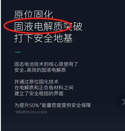 在這個事情上,蔚來耍了兩個小聰明,第一,蔚來此次推出的并非全固態(tài)電池,而是固液電池,也就是半固態(tài)。半固態(tài)電池,通常是一側(cè)電極采用固態(tài)電解質(zhì),而另一側(cè)電極仍用液態(tài)電解質(zhì)。嘗試半固態(tài)電池的,很多是出于快速商業(yè)應(yīng)用的考慮。