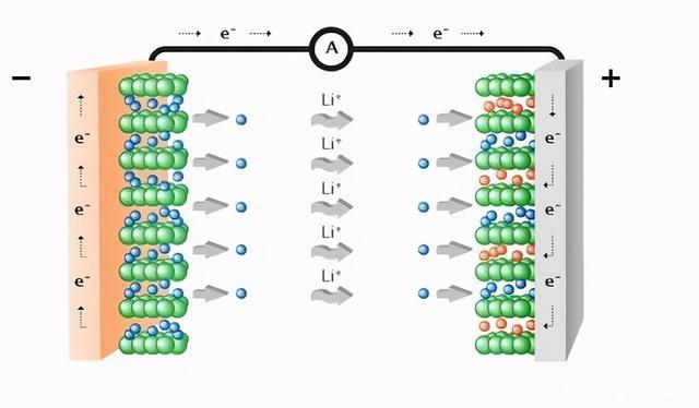 當鋰離子電池通電時,負極與電解液中的鋰發生反應,產生電子積聚在負極周圍,正極發生化學反應后就會吸引這些電子,產生電子流。