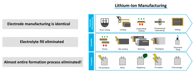 其正負極片的制造方式與現有液態鋰離子電池完全相同,同時免去了電解質的加注,以及大部分的化成工藝,實現以最少的固定資產投資快速量產。