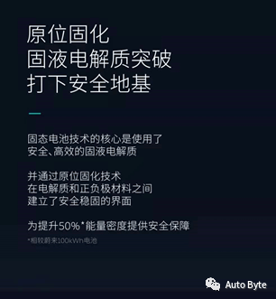 今年一月,蔚來在微信公眾號發(fā)表了一篇名為《蔚來發(fā)布150kWh固態(tài)電池》的文章,然而文中對電解質(zhì)的描述是「安全,高效的固液電解質(zhì)」,這與固態(tài)電池的定義「使用固體電極和固體電解質(zhì)的電池存在出入」。事后蔚來創(chuàng)始人李斌也公開承認(rèn),所謂的固態(tài)電池其實(shí)是固液混合電池,雖然較原有鋰電池技術(shù)有突破,但也并不是革命性的突破。