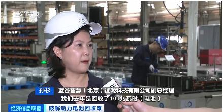 藍谷智慧(北京)能源科技有限公司副總經理 孫杉:我們去年回收了100兆瓦時電池,相當于2000到3000輛車。