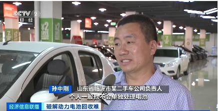 山東省臨沂市某二手車公司負責人 孫中剛:個人一般不會單獨處理電池,因為畢竟拆裝電池包需要專業技術,還有回收渠道他可能也不了解。