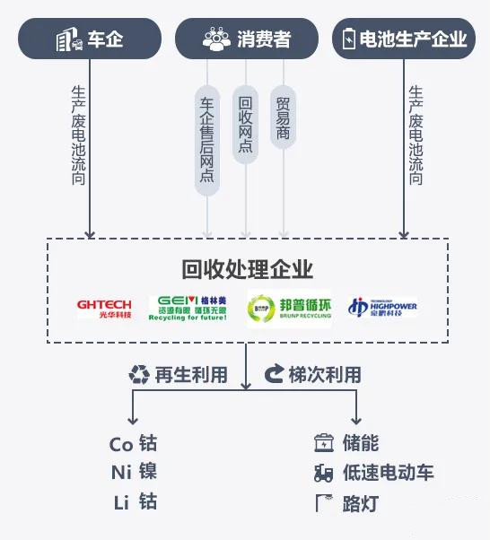 據(jù)了解,動(dòng)力電池回收一般分為兩種形式,梯次利用和再生利用。梯次利用主要針對(duì)由于容量降低而無法滿足純