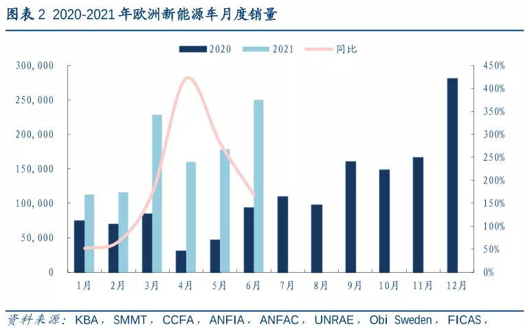 海外市場(chǎng)上,歐美等地區(qū)的新能源車(chē)滲透率同樣不斷攀升。上半年歐洲新能源車(chē)銷(xiāo)量有望達(dá)到105萬(wàn)臺(tái),滲透率約20%。