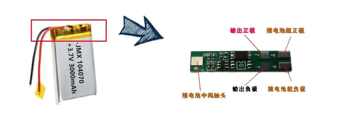 電池兩端向負(fù)載輸出電流時(shí),電流按照下圖的紅色箭頭流動(dòng)。