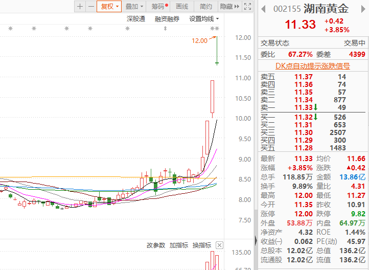 自該消息披露后,國(guó)內(nèi)相關(guān)個(gè)股均獲上漲,其中ST華鈺錄得4連板,湖南黃金錄得2連板。