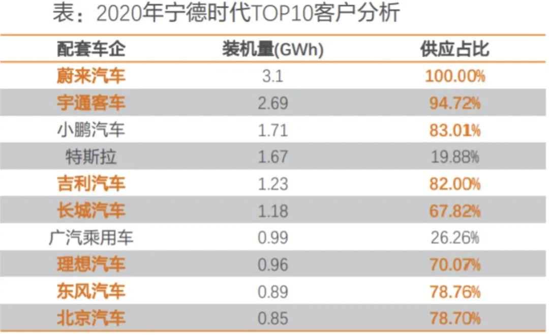 寧德時代2020年前十客戶