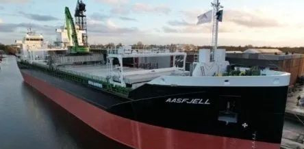 這是Aasen Shipping于2019年在Royal Bodewes船廠訂造的系列2艘混合動力散貨船中的首制船。目前,第二艘“Aafossen”號的建造工作正在進行,計劃于明年4月交付。