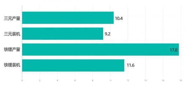 在來看一組數據,今年1-11月國內動力電池累計裝機量達128.3GWh,三元電池裝車量累計63.3GWh,占總裝車量49.3%,同比累計上升92.5%;磷酸鐵鋰電池裝車量累計64.8GWh,占總裝車量50.5%,同比累計上升270.3%。無論是裝機量還是增長速度,磷酸鐵鋰都超過了三元鋰電池。