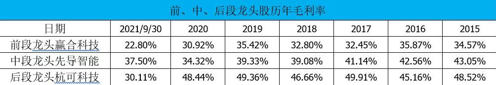 我們通過對三個環節的龍頭股毛利率對比分析證實了推測的情況。