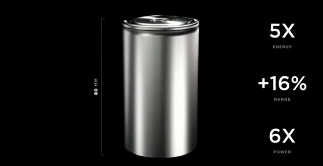 4680電池最早在2020年9月特斯拉的“電池日”上亮相,彼時被特斯拉CEO埃隆·馬斯克 (Elon Musk)稱之為電池技術上“巨大的突破”。按照他的說法,4680電芯的單體能量提高5倍,整車續航里程增加16%,電力相比有極耳電池提升6倍,功率輸出提升6倍。