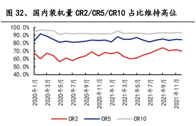 頭部聚集效應維持高位,頭部公司市占率穩定,二線廠商競爭激烈。2020/2021 年國內動力電池裝機量 CR3 為 63.4%/67.3%,CR5 為 84%/84.5%,CR10 為 93.2%/92.8%,頭部聚集效應明顯,公司與比亞迪市占率穩中有升。而除頭部兩家 廠商以外,其他廠商的出貨量排名波動明顯,其中,中航鋰電依靠 2021 年對廣汽 的供貨將 2021 年的排名穩定在 3~4 名,蜂巢能源則依靠對長城汽車的穩定供貨, 從 2021 年 7 月開始,排名穩定在前 7 名。整體來看,3-10 名排名波動仍舊頻繁, 二線廠商競爭依然激烈。