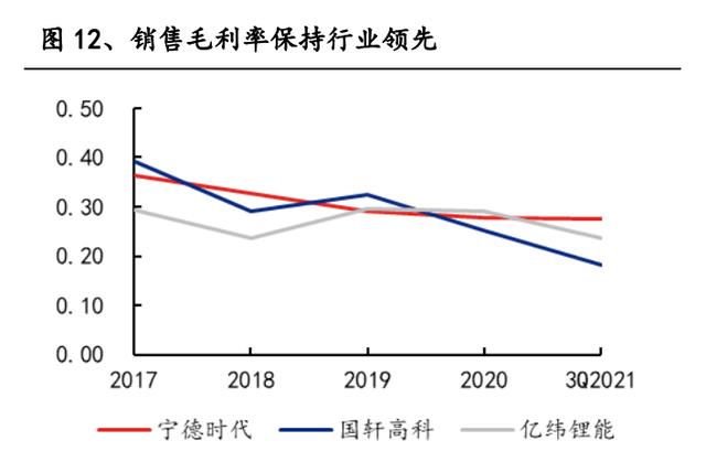 盈利能力方面,2017-2021 年,公司動力電池售價和成本均持續下降,但受原材 料價格波動等因素的影響,成本降幅不及售價降幅,動力電池毛利率持續下降。 但受益于客戶優勢、品牌優勢及規模效應、技術優勢帶來的成本競爭力,公司動 力電池毛利率仍高于同行業可比公司的毛利率均值。此外,公司期間費用管控卓 有成效,銷售凈利率維持在較高水平。
