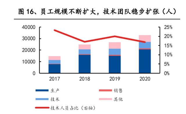 員工人數逐年增長,高層次人才隊伍建設加強。隨著公司業務規模擴張,員工數 量逐年上升,技術人員占比近 20%。截至 2021 年 6 月 30 日,公司擁有研發技術 人員 7878 名,其中,擁有博士學歷的 134 名、碩士學歷的 1524 名。此外,公司 擁有專業化、多元化、國際化的管理團隊,核心管理成員在動力電池領域積累了 深厚的專業知識和豐富的實踐經驗。在成熟穩定的管理團隊和群英薈萃的研發團 隊的共同助推下,公司研發技術水平持續提升,在動力電池市場上繼續保持領先 地位。