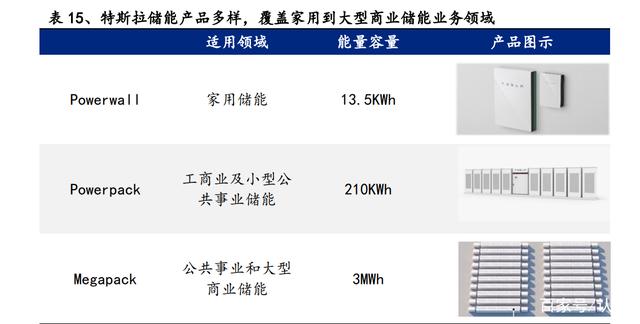 公司切入特斯拉供應體系,積極拓展海外儲能客戶。特斯拉三大儲能產品 Powerwall、Powerpack、Megapack 適用不同領域的儲能市場,打造多元應用場景。 Powerwall 定位家庭儲能產品,二代能量容量 13.5kWh,可與 Solar Panel 和 Solar Roof 無縫集成,形成“存儲-充放”的有機循環。2020 年特斯拉在美國家庭儲能 市場占有率超 50%,截至 2021 年 11 月,Powerwall 全球累計安裝量超 25 萬套, 較 2020 年 5 月新增 15 萬套。Powerpack 聚焦工商業及小型公共事業儲能,每個 Powerpack 包含 16 個獨立的電池艙,能量容量 210KWh,可根據場所的空間、電 力和能源需求進行擴展,為商業消費者和能源供應商提供更好的電網控制、效率 和可靠性。3MWh 巨型電網級儲能設備 Megapack 專為公共事業和大型商業客戶設 計,串聯多組 Megapack 可形成 1GWh 的超大儲能廠。2020 年以來,特斯拉已在全 球范圍內拿下多個 Megapack 訂單,2022 年底前的產能已全部售完。2021 年,特 斯拉儲能裝機量達3.99GWh,同比增長32.1%,光伏裝機量達35MW,同比增長68.3%, 光儲業務規模持續擴大。而公司繼向特斯拉汽車供應動力鋰電池后,也將在儲能 領域與特斯拉開展供貨合作。
