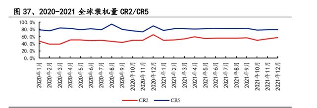 相比歐洲市場和美國市場,中國市場新能源滲透率增速更快。在不考慮汽車整體 銷量波動的情況下,乘聯會預測 2022 年中國新能源汽車預期銷量同比增長 41%。 這一方面是受益于補貼政策,一方面也得益于國內包括造車新勢力在內的公司不 斷推出優秀的車型,而公司依靠與國內汽車公司的強合作關系,裝機量和全球市 占率也隨之快速上漲。